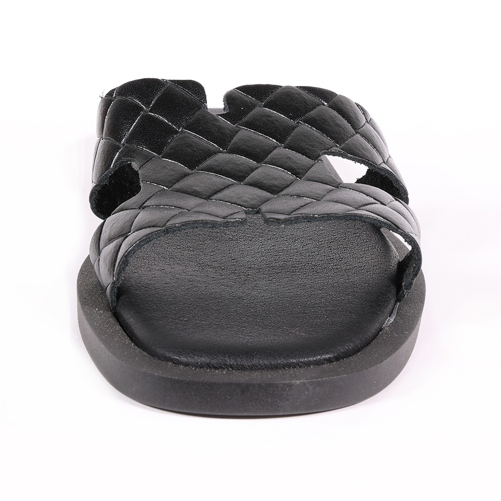 Δερμάτινη παντόφλα γυναικεία μαύρη