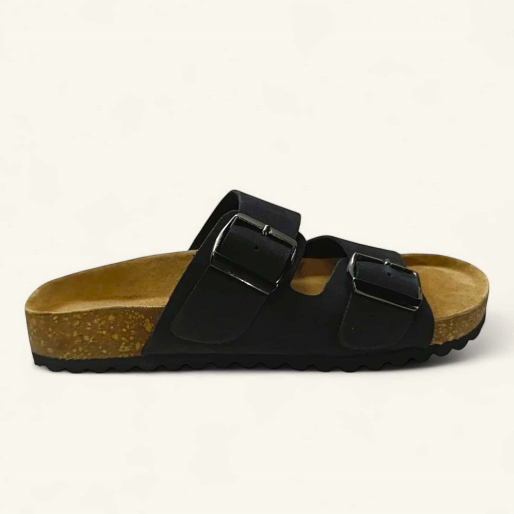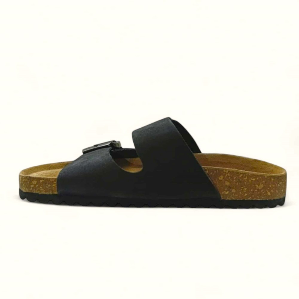 Νέο Γυναικεία μαύρη δερμάτινη παντόφλα