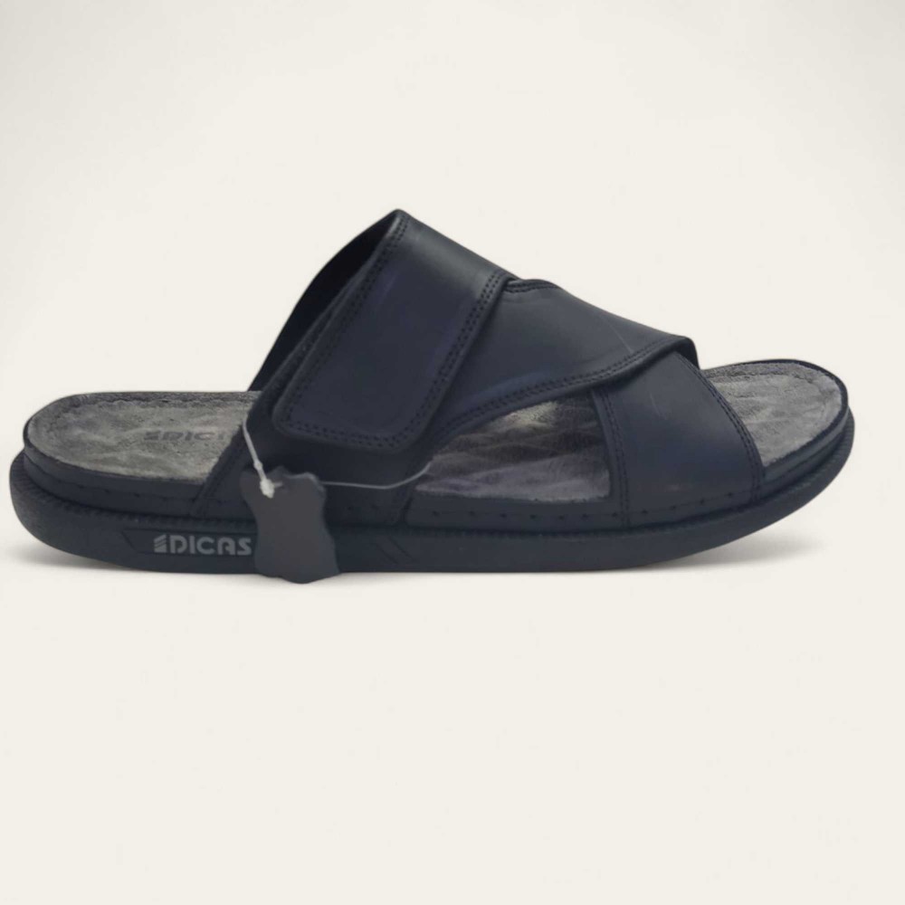Αναβαθμίστε την άνεση και το στυλ σας με την δερμάτινη παντόφλα Dicas, ιδανική για καθημερινή χρήση στο σπίτι και όχι μόνο.