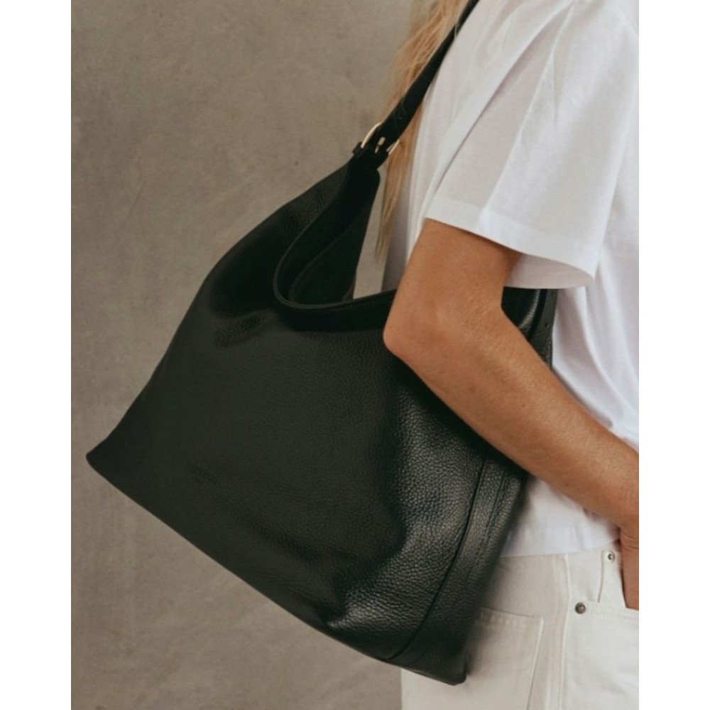 Δερμάτινη τσάντα ώμου γυναικεία μαύρη