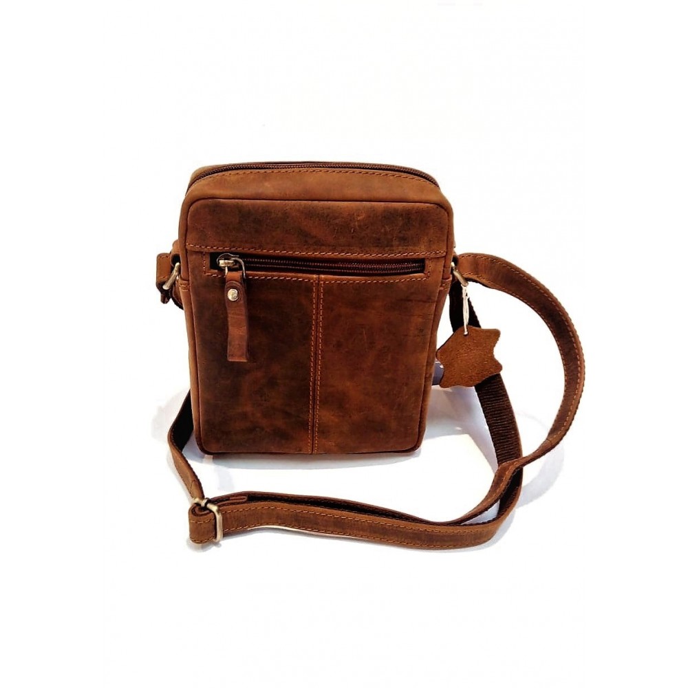 Δερμάτινη χιαστί ανδρική τσάντα καφέ