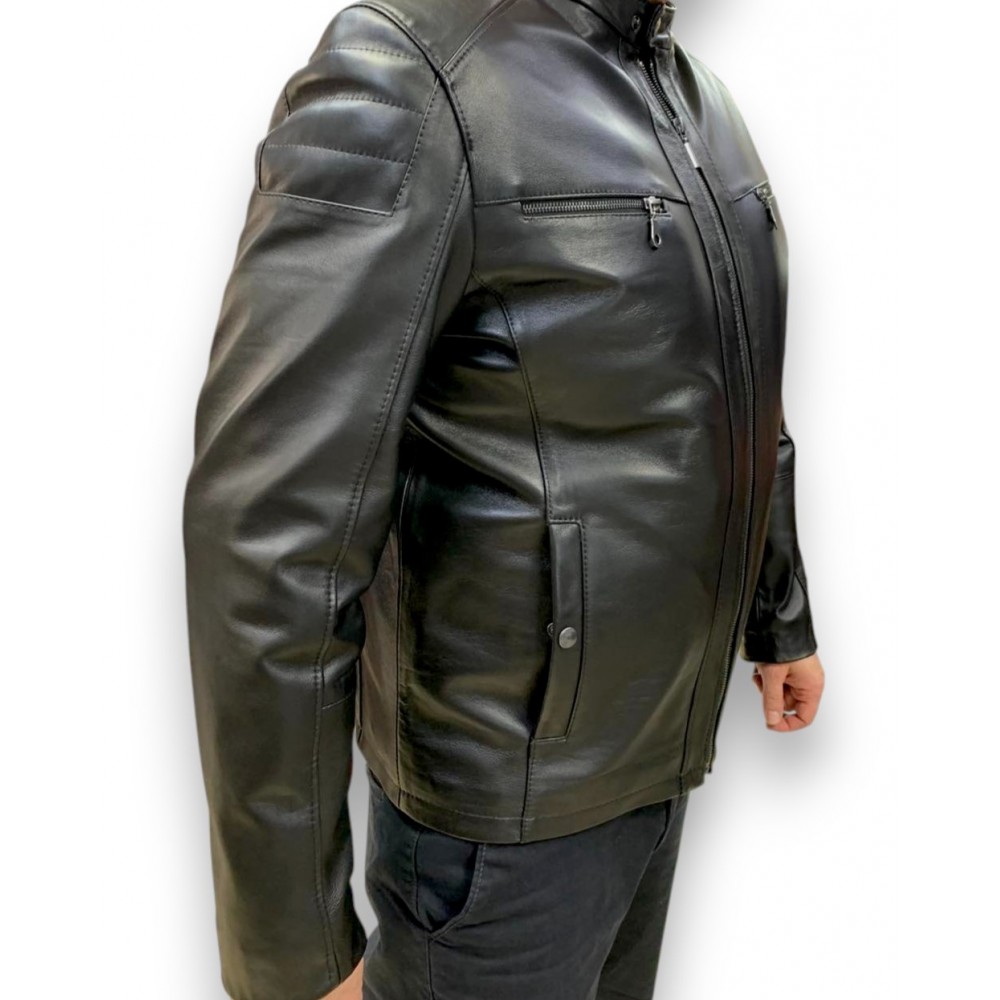 - Αυτό το μοντέρνο κλασικό σε μαύρο χρώμα δερμάτινο τζάκετ με τα γαζιά στους ώμους και ένα μαλακό πολυτελές γνήσιο δέρμα Nappa αρνί.