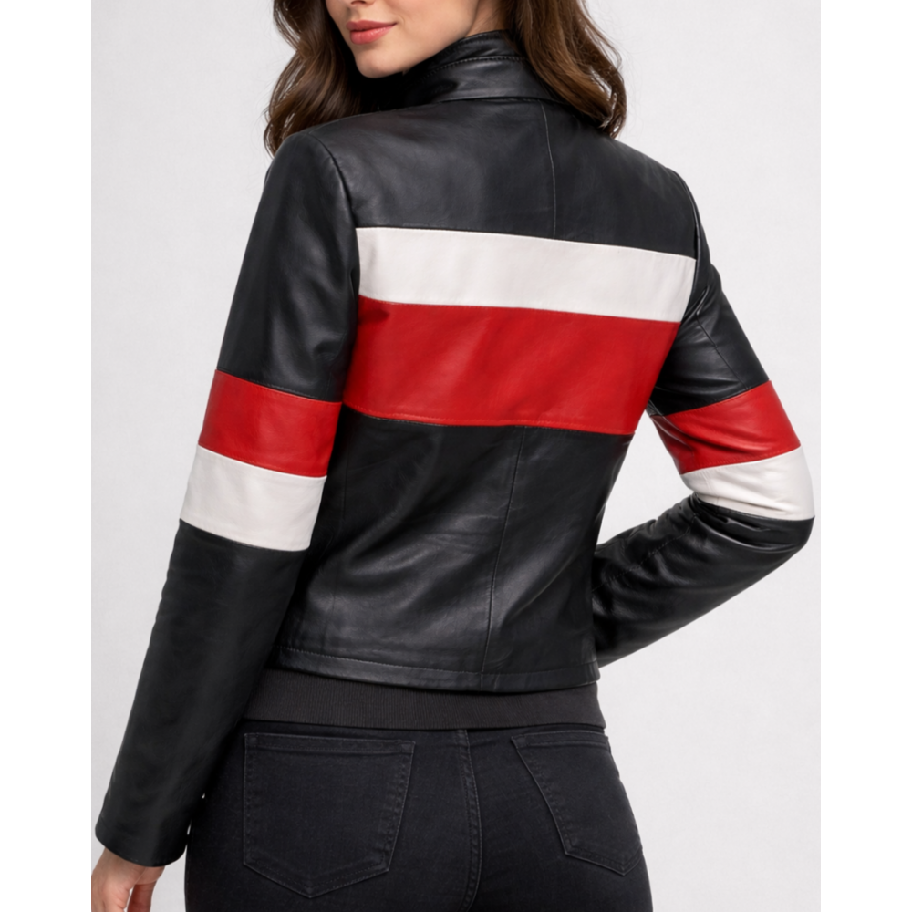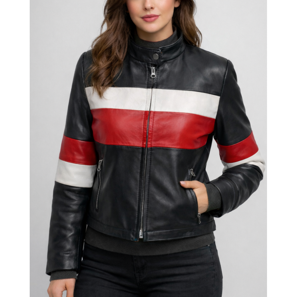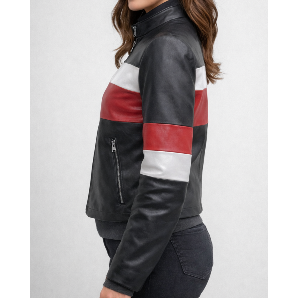 Δερμάτινο Κοντό Μπούφαν Ρίγα Κόκκινη Ασπρή