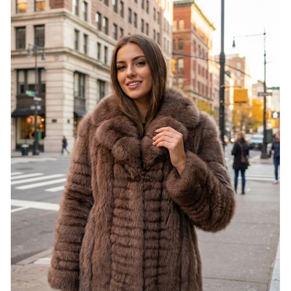 Γυναικεία ζακέτα από γνήσια γούνα αλεπού σε απόχρωση του καφέ