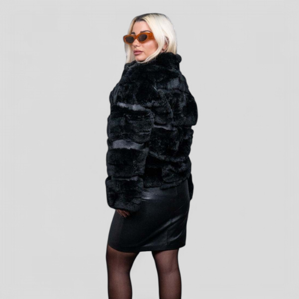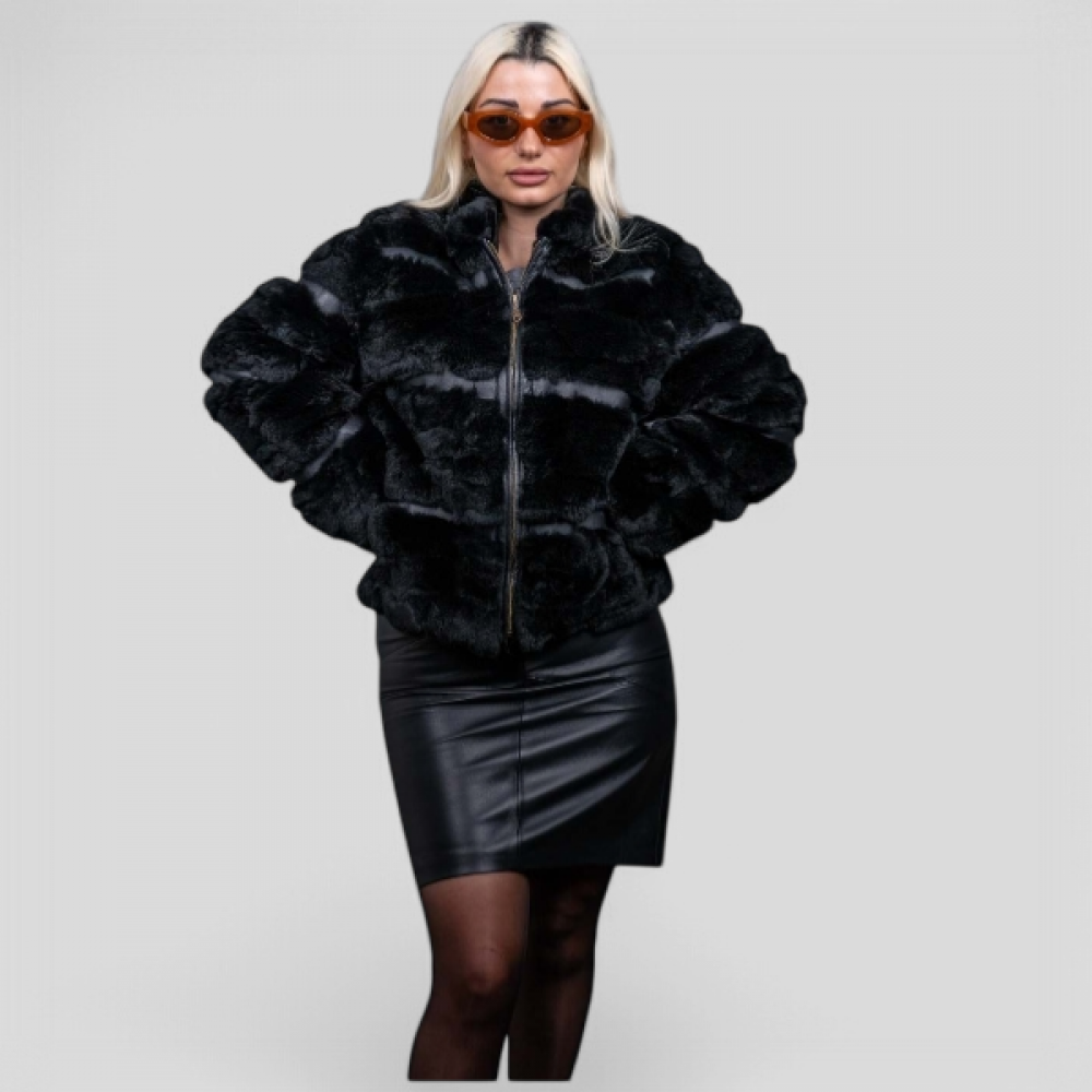 Γνήσια γούνα ρεξ λαγού σε μαύρο χρώμα