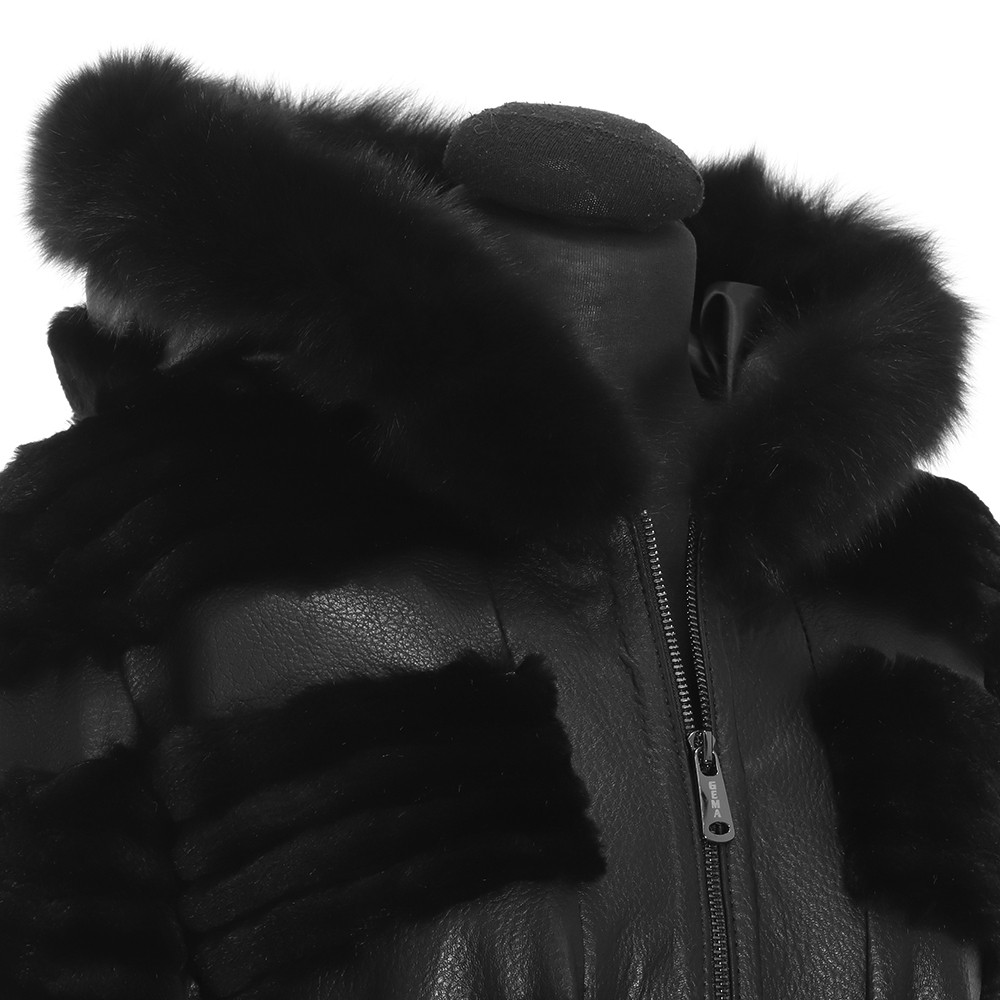 Συνδυασμός γούνας άριστης ποιότητας με δέρμα μαύρο αρνί σε λωρίδες και δέρμα ζώνη