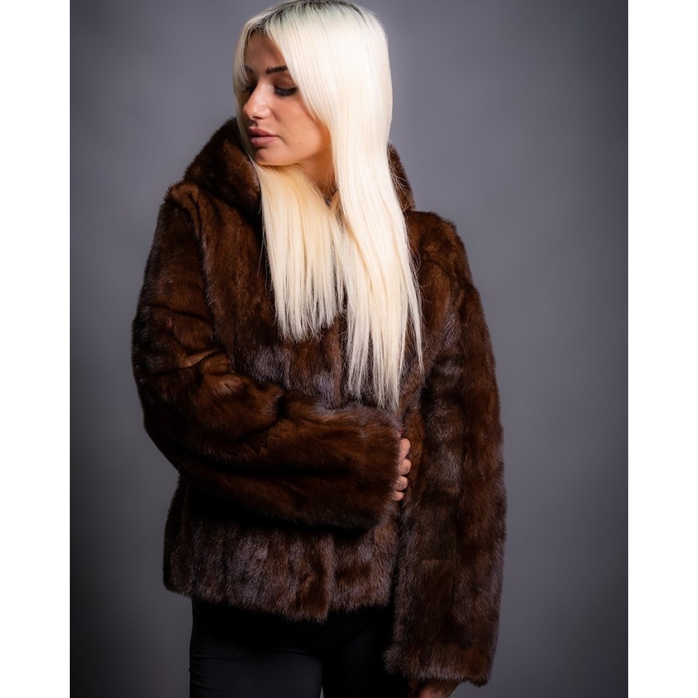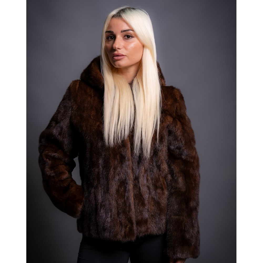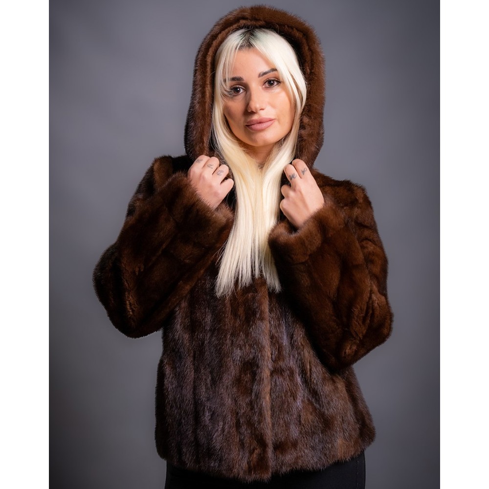 - Γνήσια γούνα γυναικεία από βιζόν, με κουκούλα