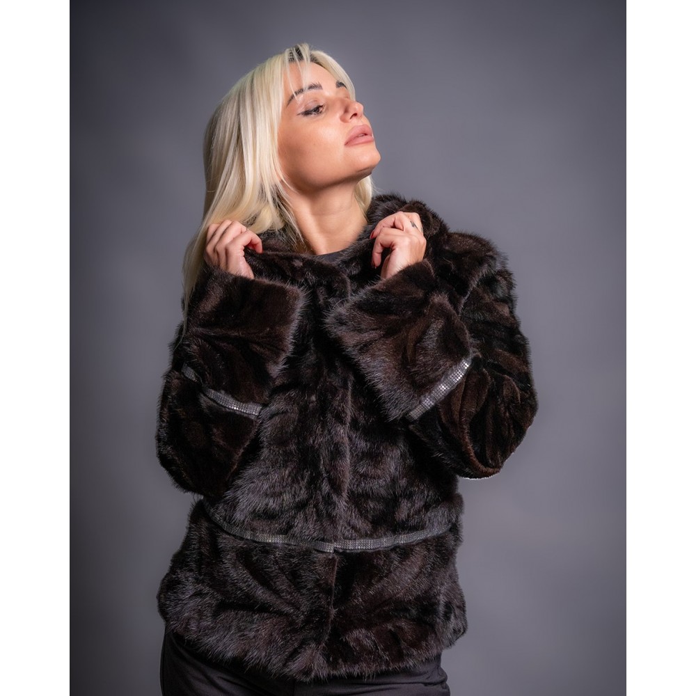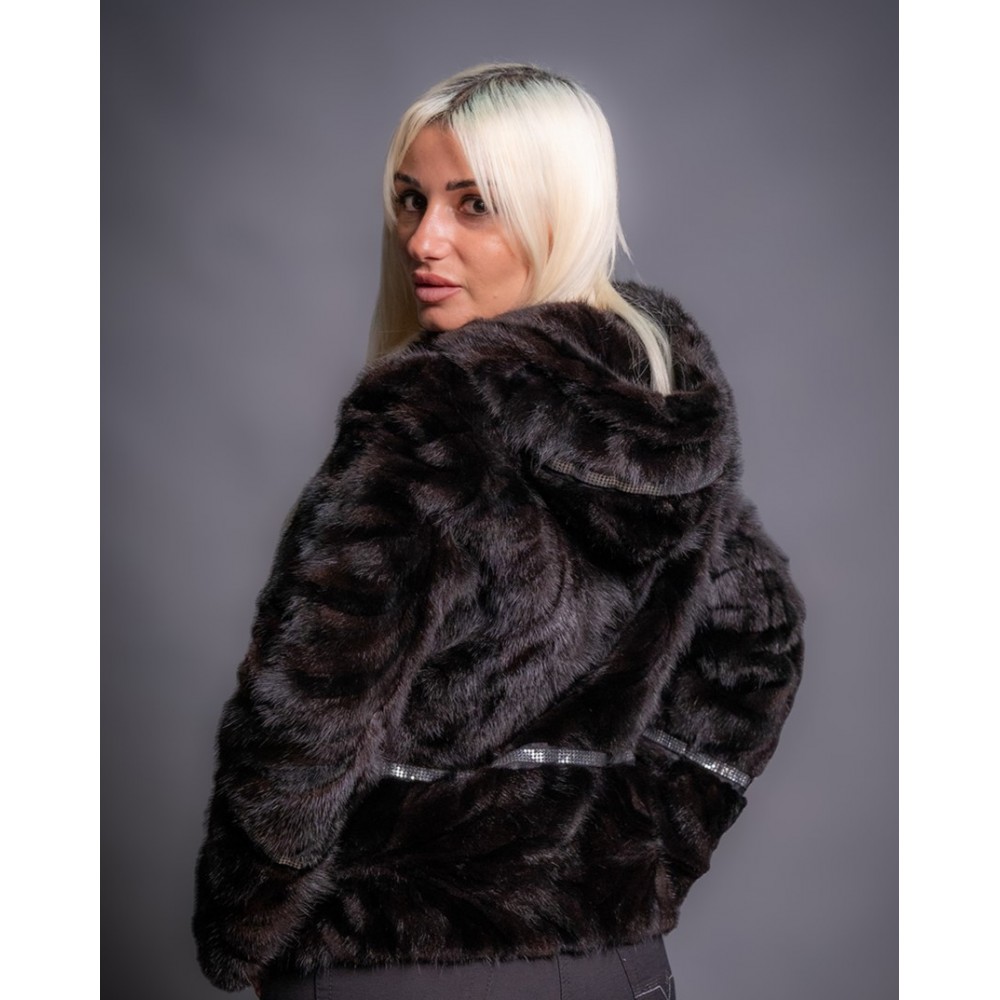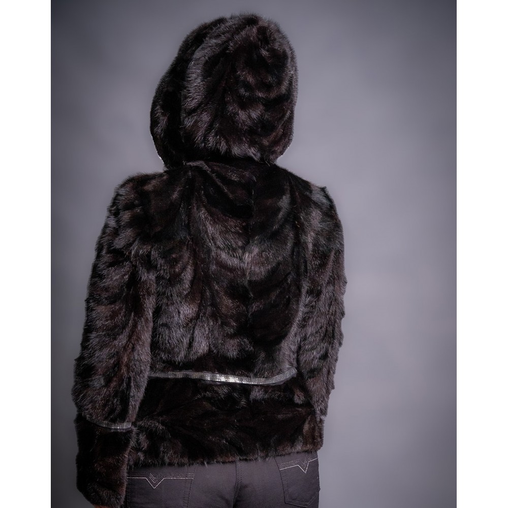 Γυναικεία γούνα βιζόν με κουκούλα σε μαύρο