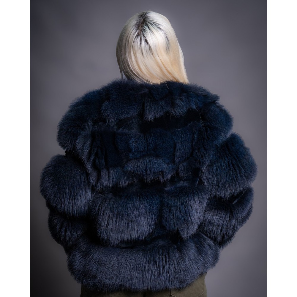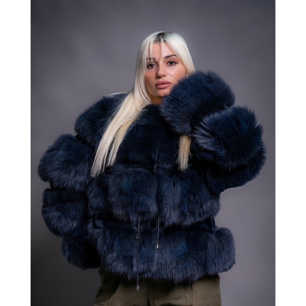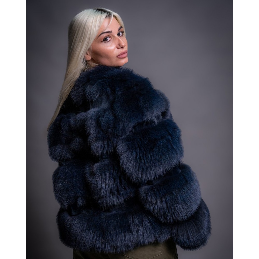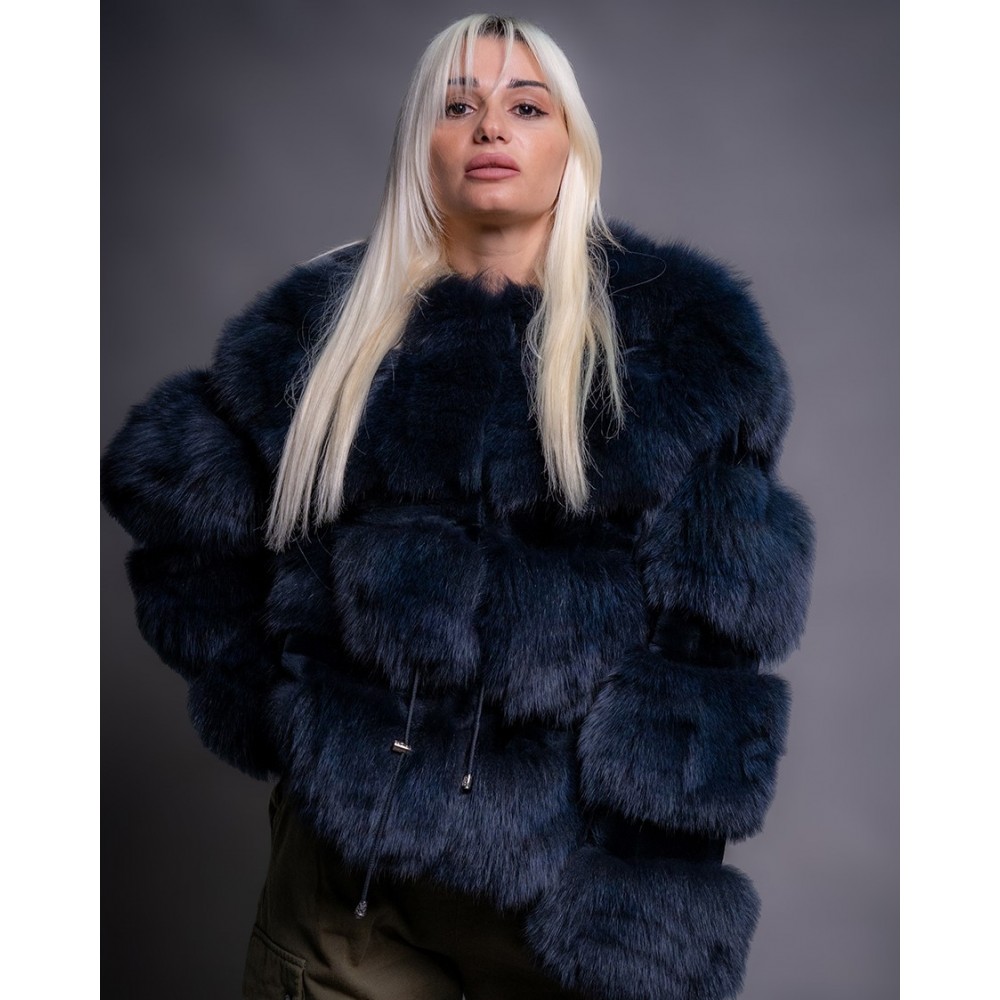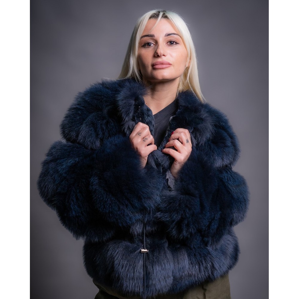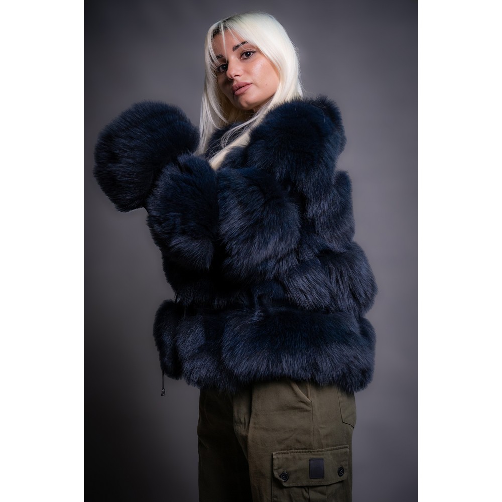- Γυναικεία κοντή ζακέτα απο γνήσια γούνα αλεπούς σε μπλέ χρώμα