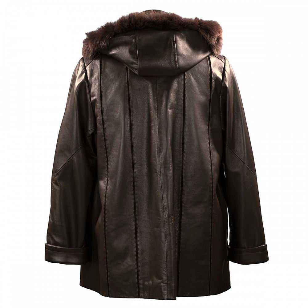 - Γυναικεία δερμάτινη ζακέτα σε καφέ σκούρο.