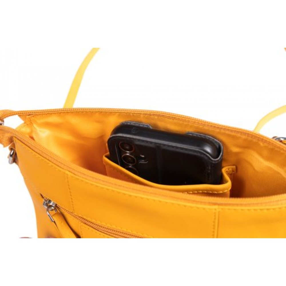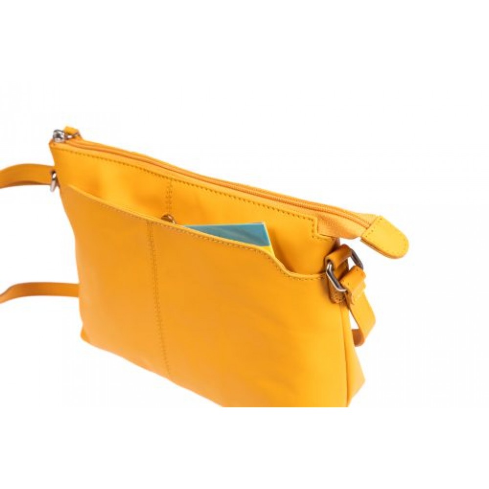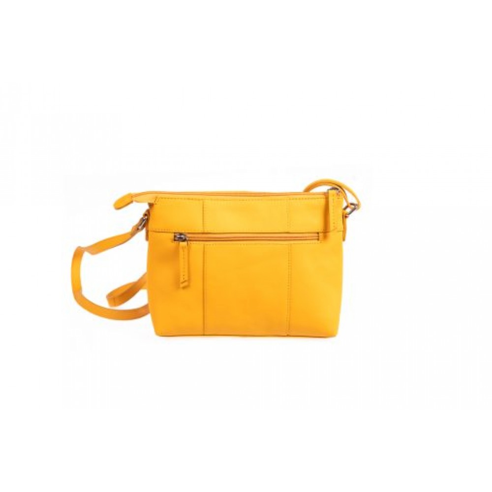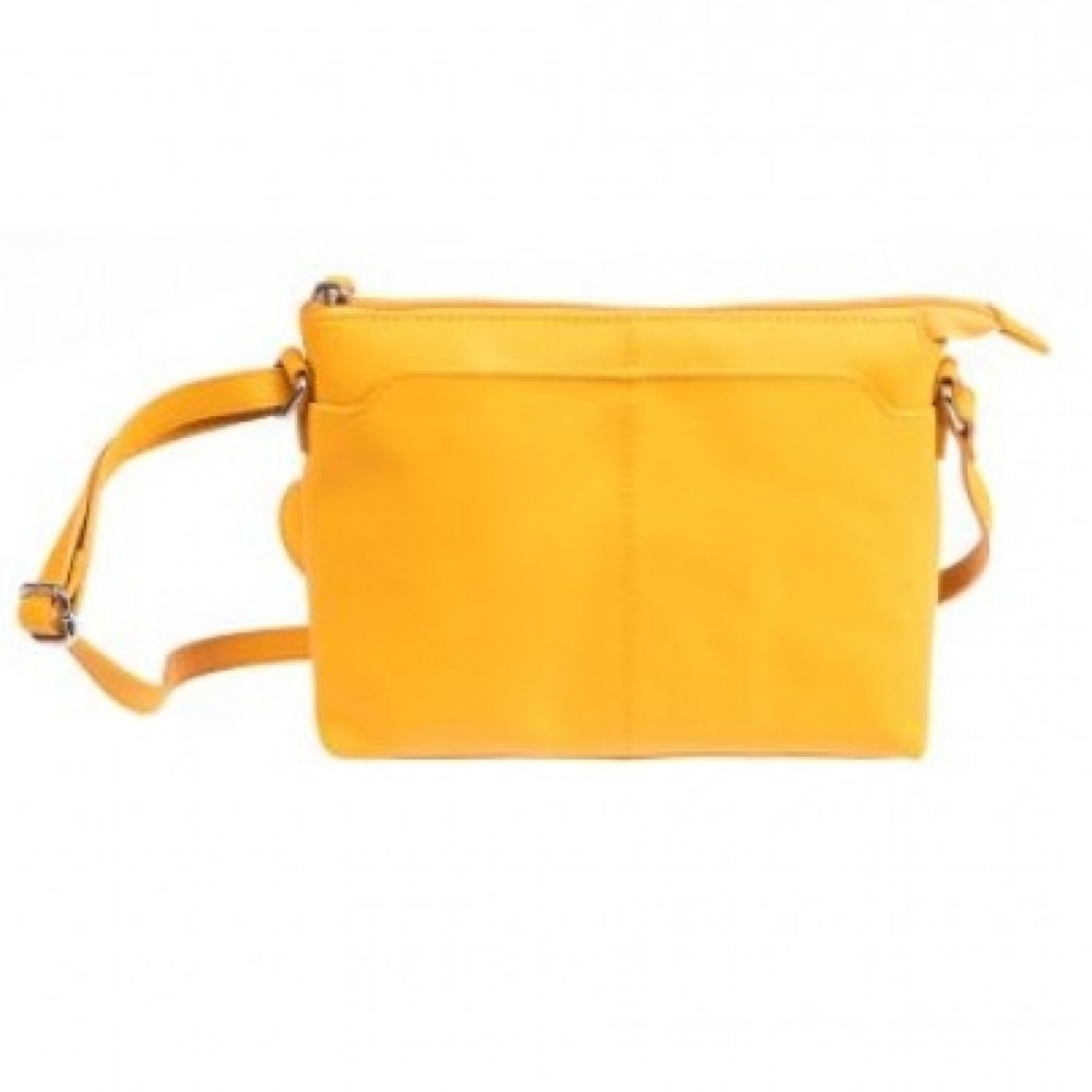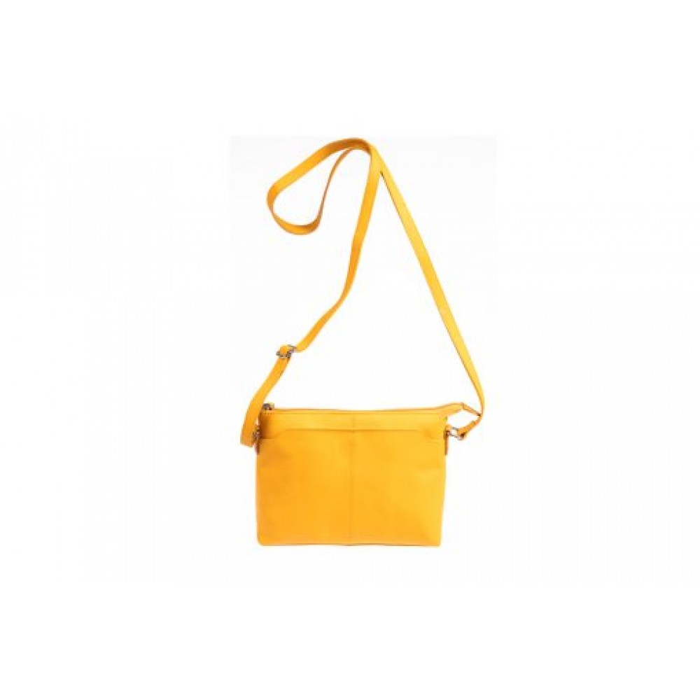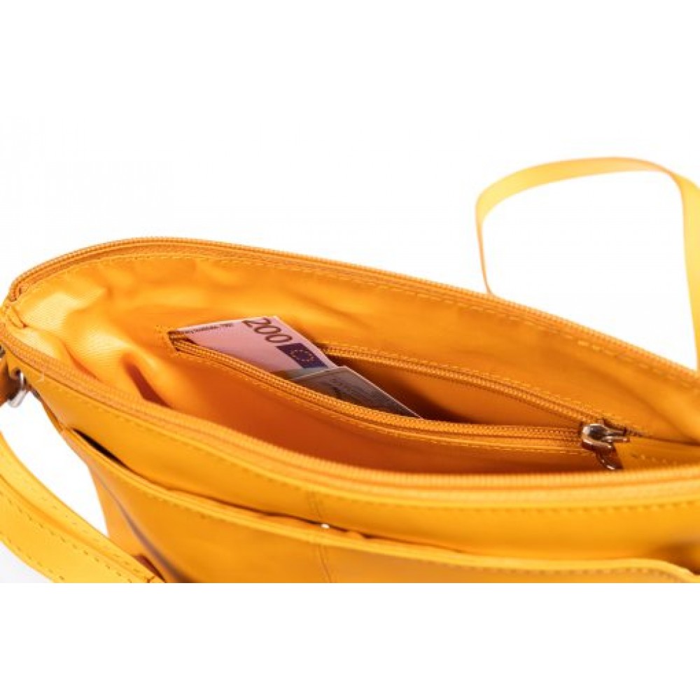 Γυναικεία δερμάτινη χιαστί τσάντα σε κίτρινο
