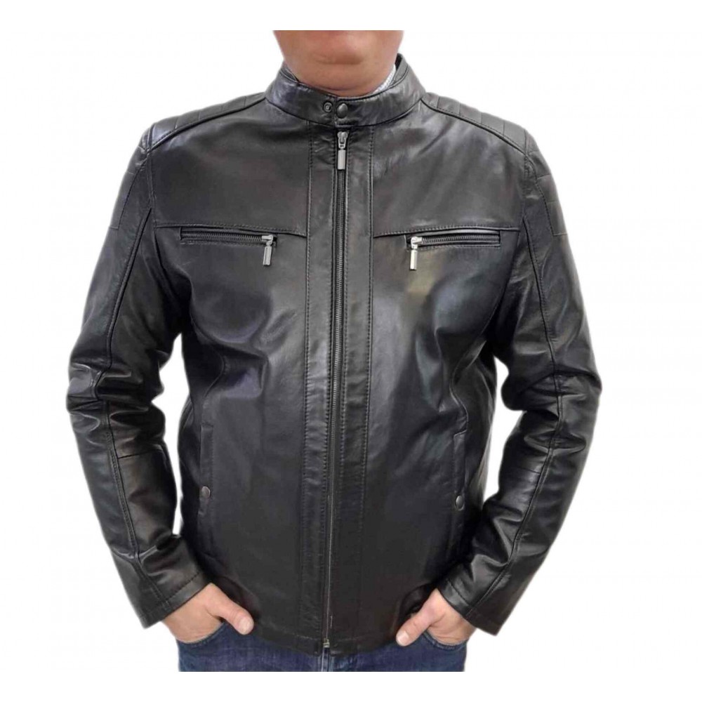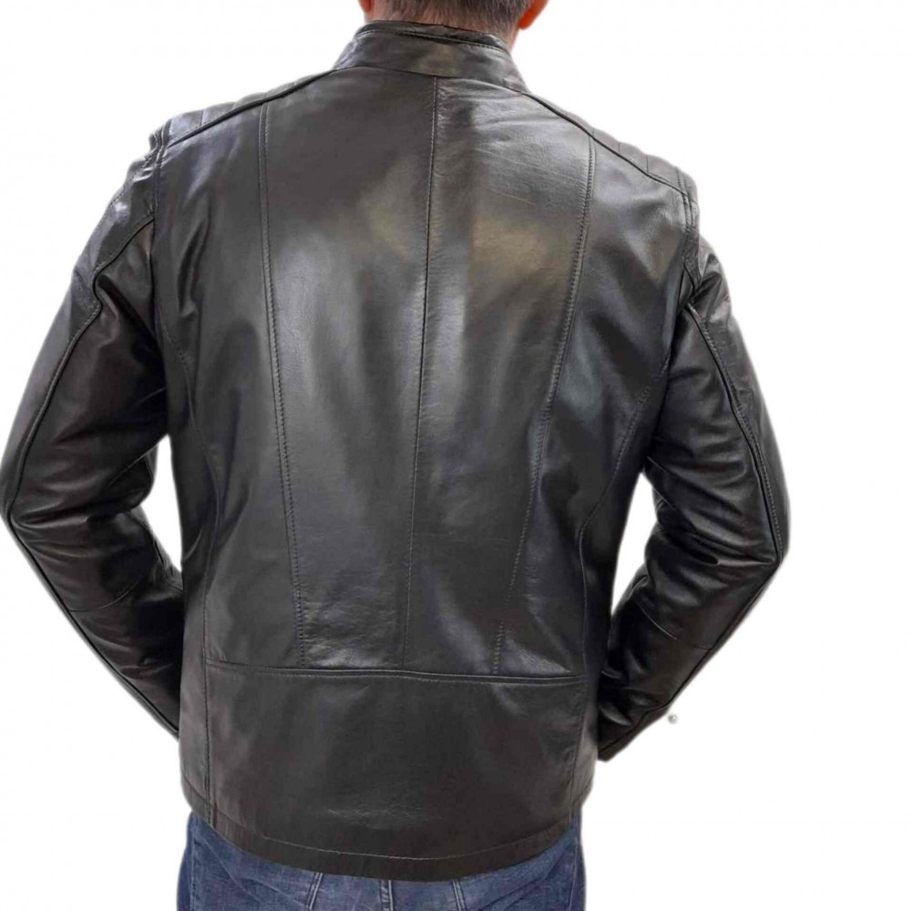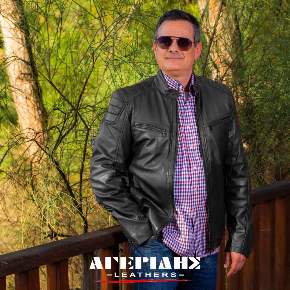 Με ένα κλασικό πνεύμα αναβάτη μηχανής,σε μαύρο χρώμα, αυτό το μοντέρνο κλασικό δερμάτινο σακάκι ολοκληρώνει το αγωνιστικό πνεύμα με τα γαζιά στους ώμους και ένα μαλακό πολυτελές δέρμα Nappa αρνί.