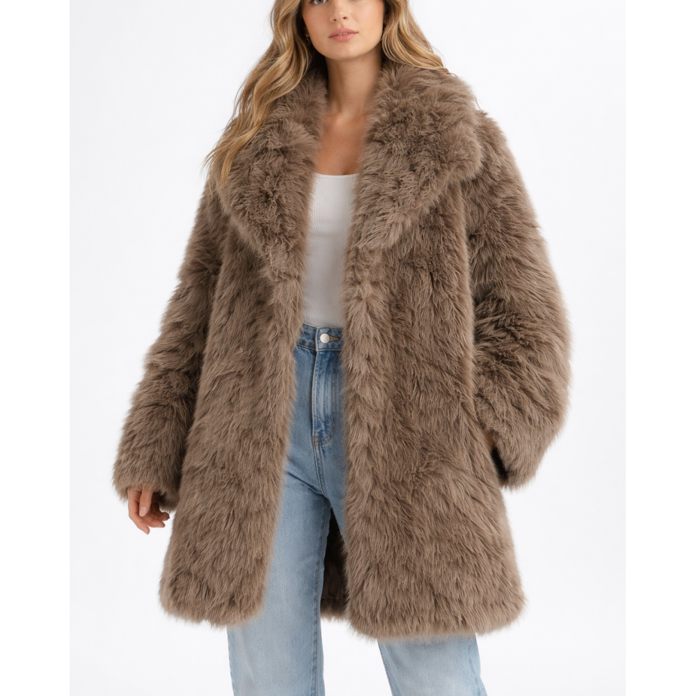 Οικολογική Μακρία Γούνα Παλτό σε Καφέ Γκρί
