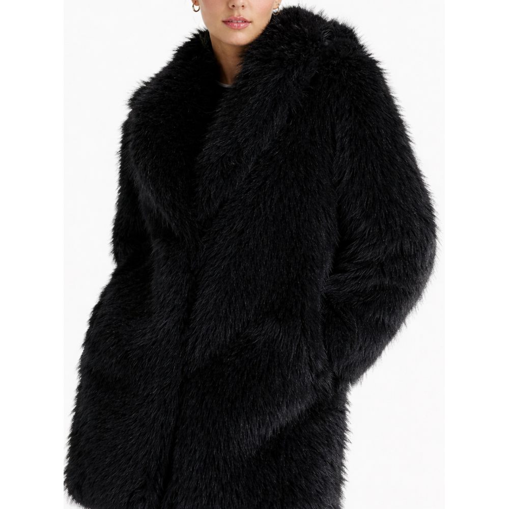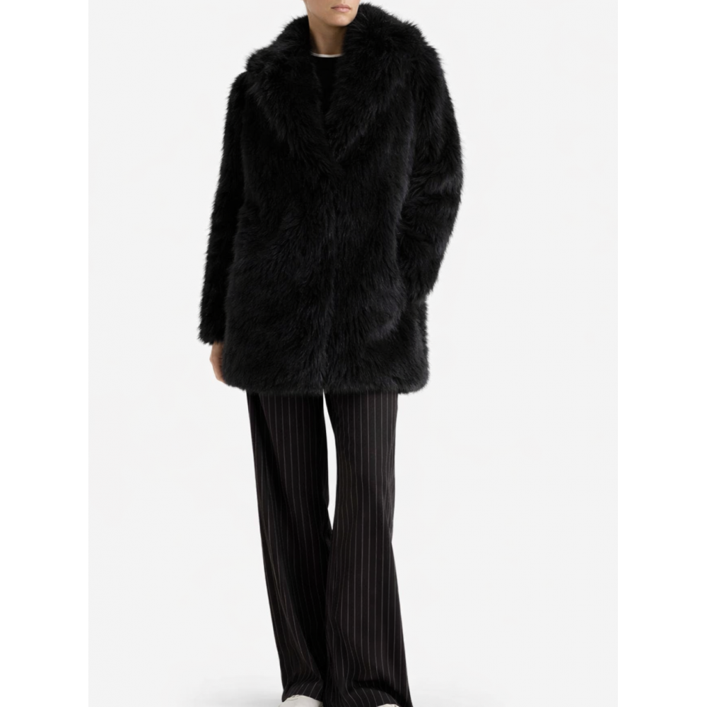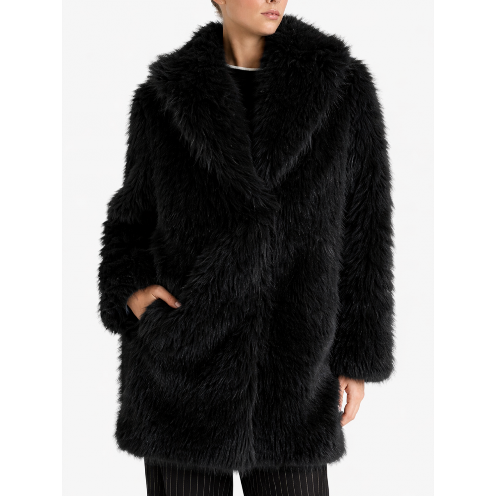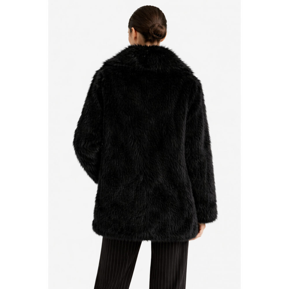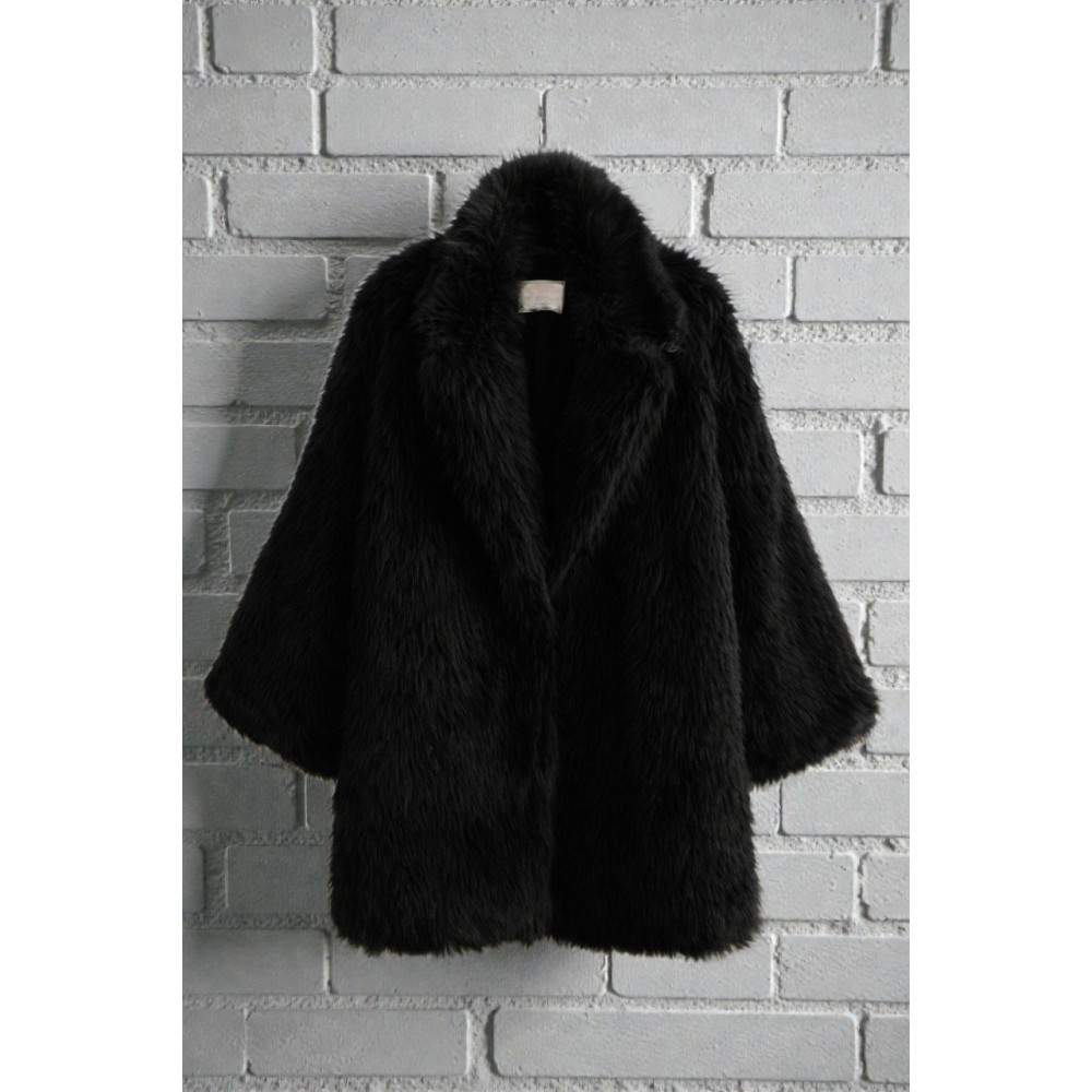 Οικολογική Μακρία Γούνα Παλτό σε Μαύρο